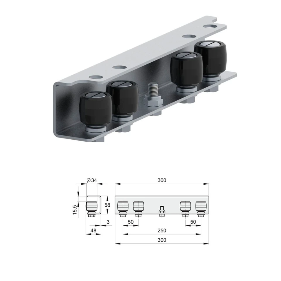 Kit Telescopico, apertura 15mts. aplica donde es un claro de 15 metros y se reparte en 2 hojas. Peso maximo 400kg en la segunda hoja.