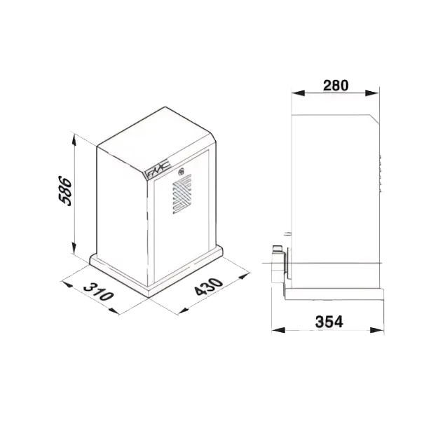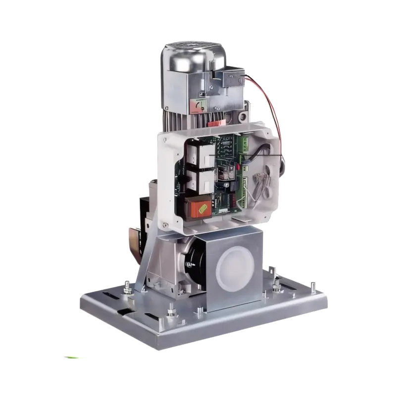 Motor asíncrono trifásico de 0.8 kW con alimentación flexible 220V o 400V, capaz de mover portones de hasta 3500 kg y 35 metros de longitud. Sistema auto-frenante que proporciona bloqueo mecánico eliminando la necesidad de cerraduras adicionales.