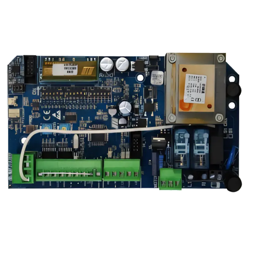 Control electrónico avanzado con receptor de radio 433.92 MHz para 62 controles remotos. Salidas dedicadas para fotocélulas y accesorios (400mA 24Vdc), indicador luminoso de portón abierto y salida intermitente de 40W.