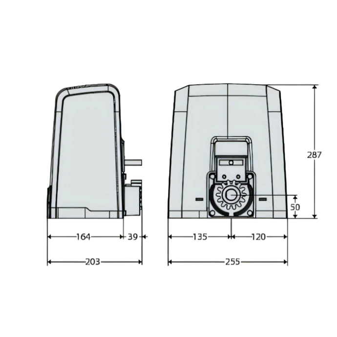 Versatilidad de instalación La posición sumamente baja del piñón, la estructura compacta del accionador permiten adaptar el equipo a diferentes condiciones de obra, simplificando el montaje en espacios reducidos o configuraciones no estándar.