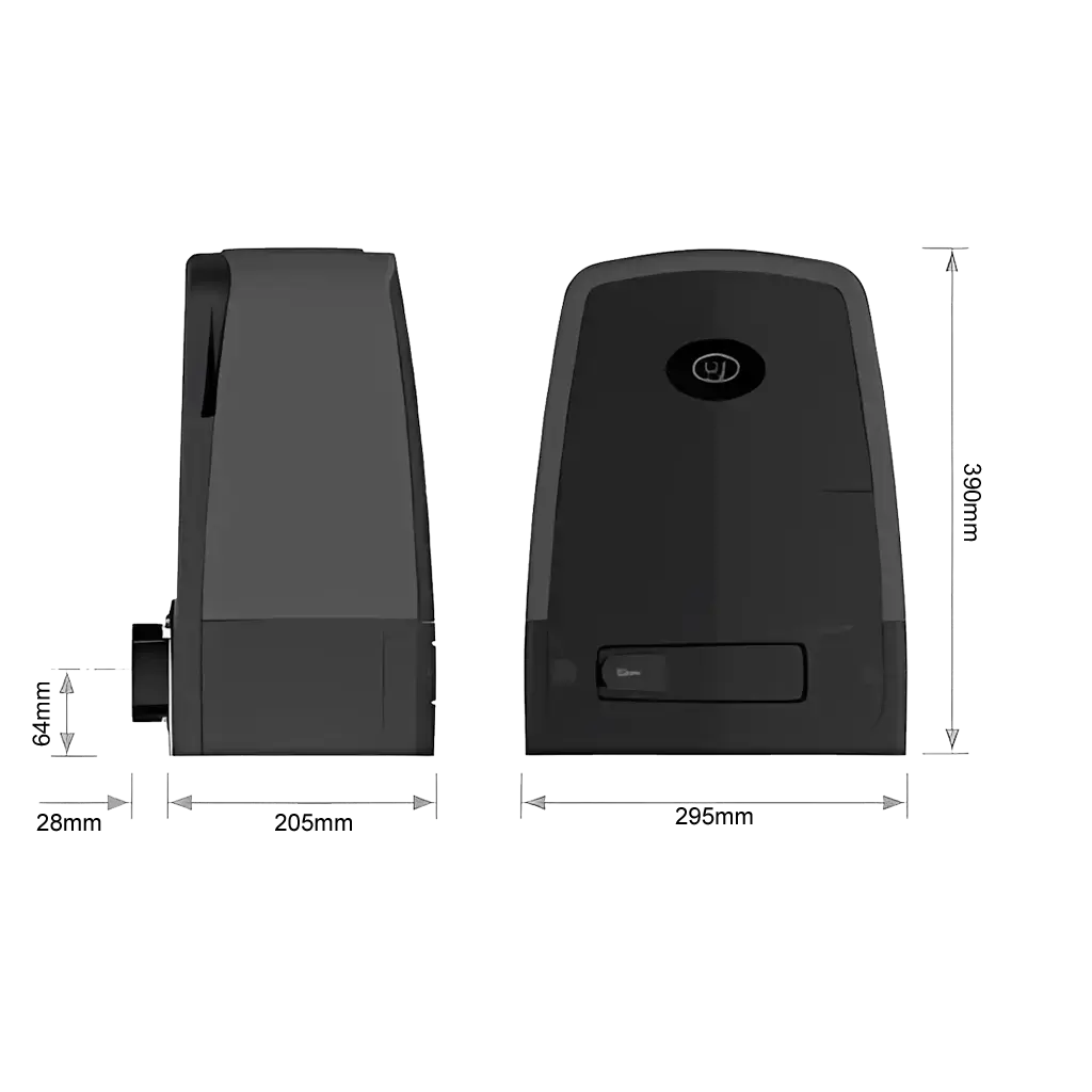 Motor DC de gran torque hermético capaz de mover portones industriales de hasta 1000 kg y 50 metros con fuerza de arranque de 40 kgf. Mecanismo de engranajes fabricado a presión con aluminio fundido para máxima potencia, rendimiento absoluto y hasta 750 operaciones diarias.