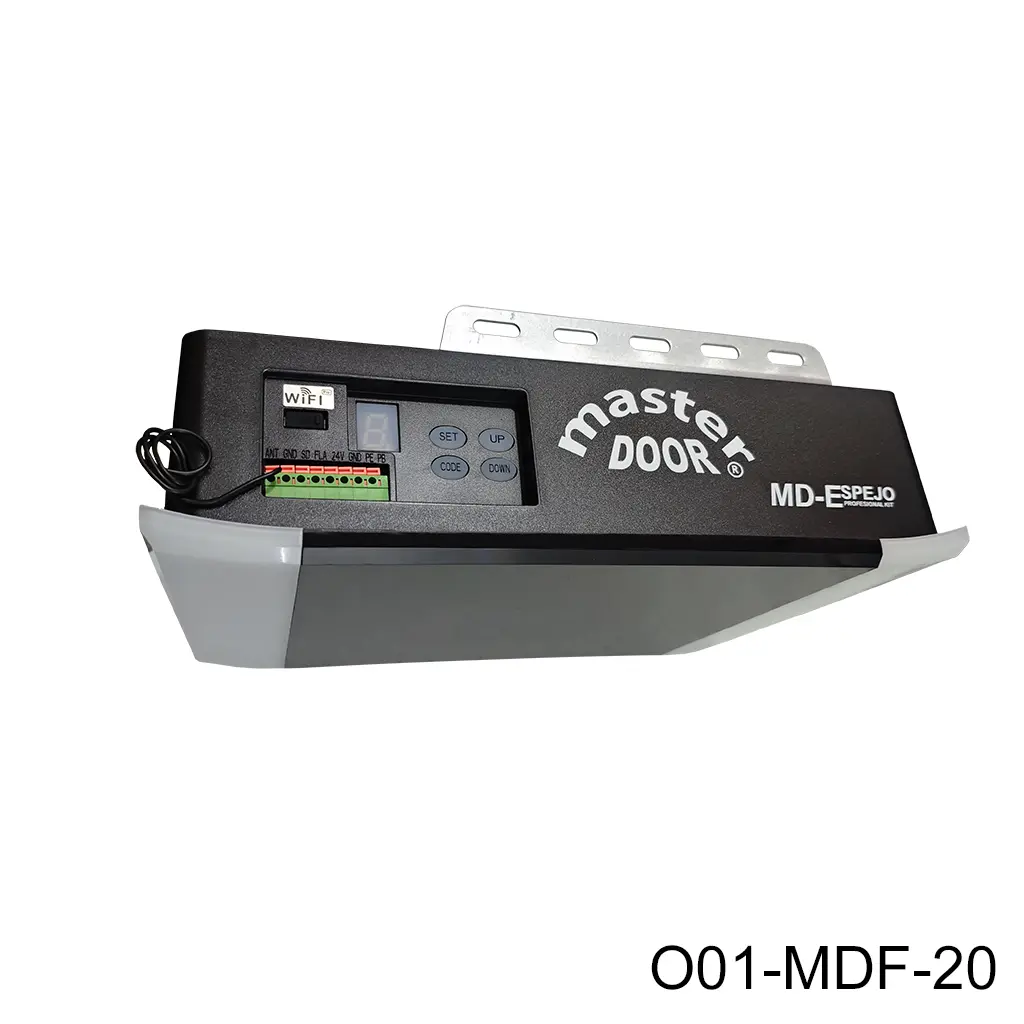 El MD Espejo ofrece un rendimiento excepcional con un sistema de arranque y parada suave que prolonga la vida útil del motor. Su velocidad de apertura y cierre es configurable, adaptándose a diferentes portones, y cuenta con una fuerza de empuje de 1000 N, lo que garantiza un funcionamiento confiable.