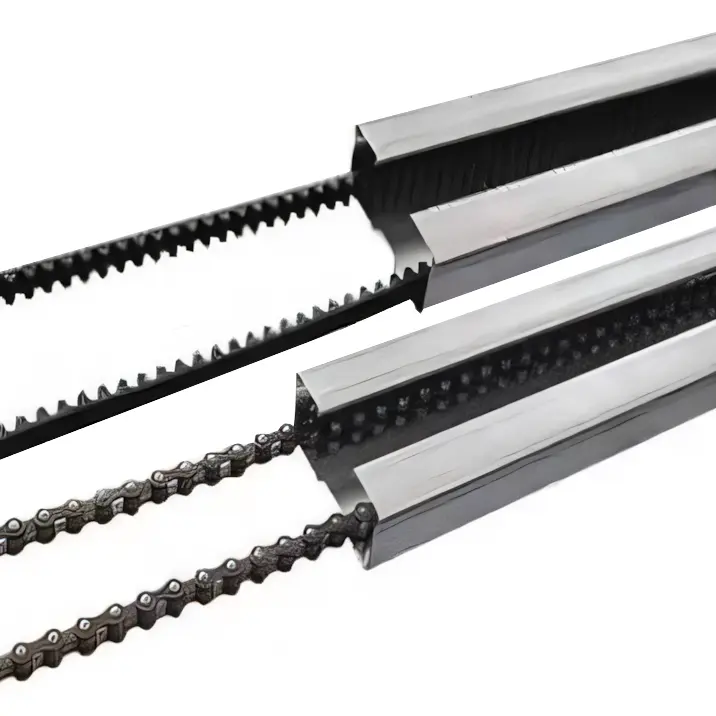 Rieles perfil T con cadena, seccionados para ajustarse a su instalación.