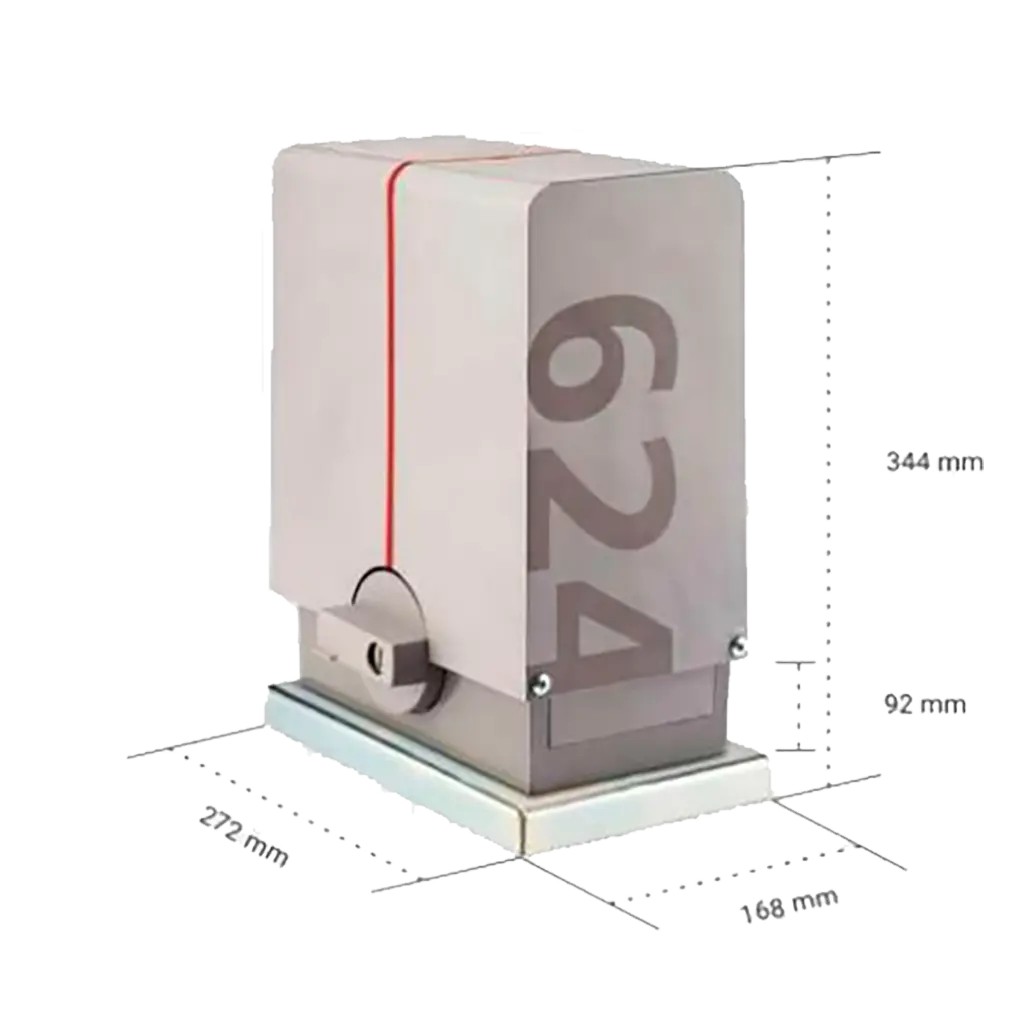Diseñado para resistir las inclemencias del tiempo, este motor tiene un alto grado de protección contra el agua y la suciedad, y es funcional en un amplio rango de temperaturas, desde -20° hasta 60° grados centígrados. Su motor silencioso y moderno diseño se integran perfectamente en cualquier entorno. Con una alimentación de 125Vac y una fuerza de 20Nm de arrastre, este sistema es ideal para un uso intensivo, soportando puertas de hasta 600 kg en las mejores condiciones.