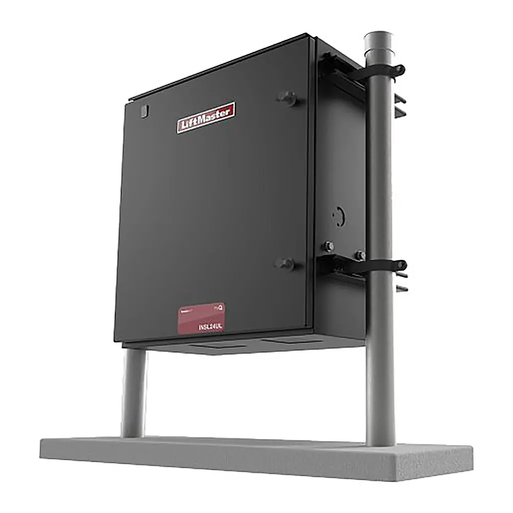 El LiftMaster SL595203UL cuenta con una transmisión de engranajes de uso comercial y un gabinete NEMA 3R que lo hace resistente a condiciones extremas, además de incluir protección contra sobretensiones y rayos.