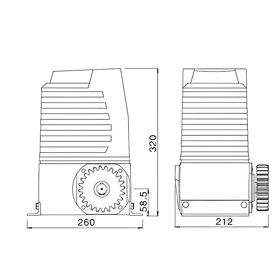 La fuerza del sistema se adapta al tamaño y peso del portón, con sensibilidad ajustable para frenar ante obstrucciones. Incluye doble protección contra sobrecalentamiento y sobrecarga, así como una llave de desbloqueo para emergencias eléctricas.