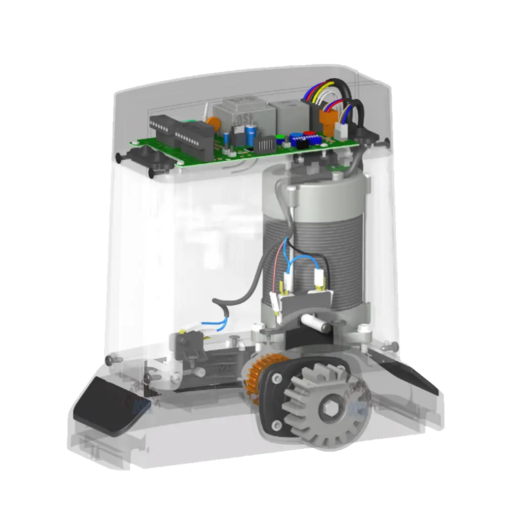 Ofrece una parada suave tanto en apertura como en cierre, así como un excelente control anti aplastamiento. Su sinfín de bronce y la reductora bañada en grasa de litio garantizan una mayor durabilidad y una reducción del ruido durante el funcionamiento.