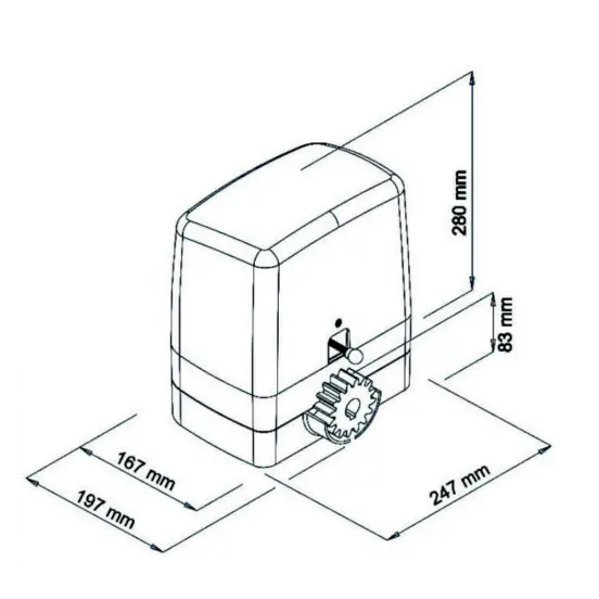 El producto viene pre cableado y con un software de fácil programación, lo que simplifica tanto la instalación como la configuración. Además, el contenedor de la tarjeta electrónica está equipado con un sello Aerstop, que protege contra la humedad y los insectos, asegurando la integridad del motor. Para mayor seguridad, incluye un dispositivo anti aplastamiento y una reducción de velocidad, ambos cumpliendo con la norma EN 12453. Su alimentación es de 110 V, lo que lo hace compatible con la mayoría de las instalaciones eléctricas.